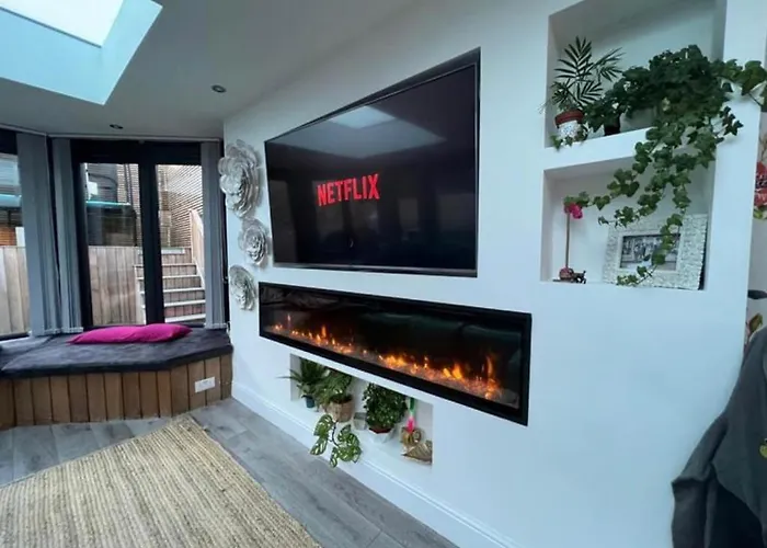 Die Modern 3 Bed - Sleeps 6 With Hot Tub verfügt über einen Patio und einen Ankleidebereich, die unter anderem mit einem Sofa und einem Schreibtisch möbliert sind. Außerdem stehen Gästen Bügelmöglichkeiten und eine Klimaanlage zur Verfügung. Außerdem sorgen Medieneinrichtungen wie ein Flachbildfernseher mit Satellitenkanälen für einen angenehmen Aufenthalt. Zur Ausstattung des Badezimmers gehören eine begehbare Dusche und eine getrennte Toilette sowie ein Haartrockner und Handtücher.